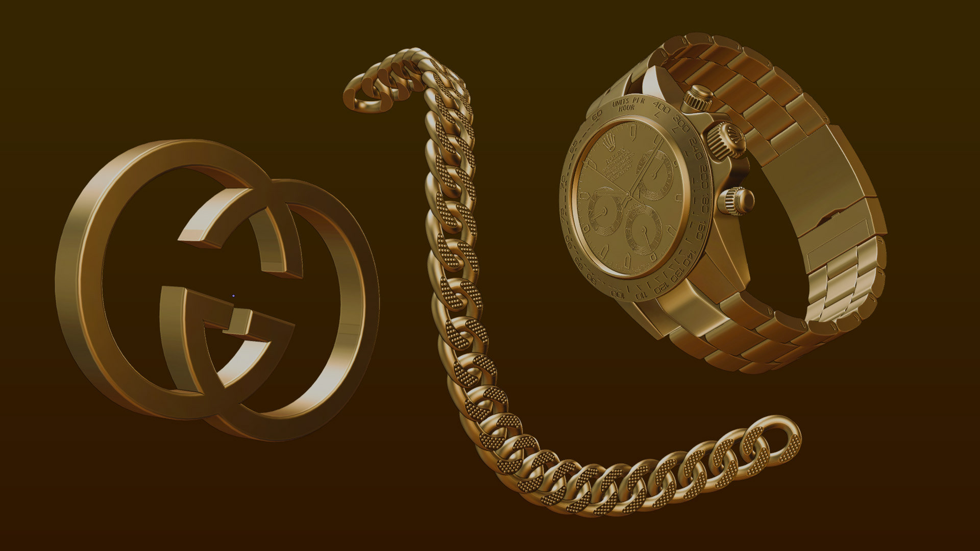I modelled and animated a collection of objects linked to the song’s themes: a Rolex, a gold chain, diamonds and a Gucci emblem. I gave each element subtle movement, positioned amidst the song title and set against a section of the instrumental track.
