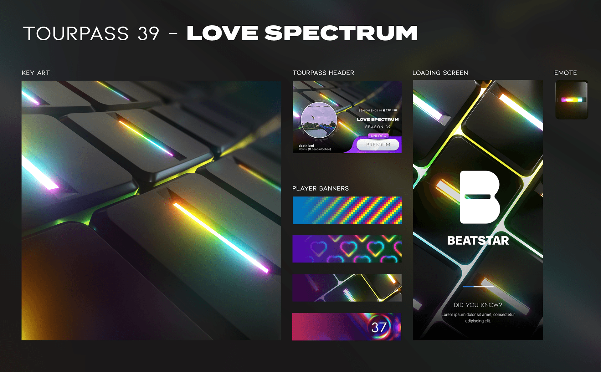 The Tour Pass was Beatstar’s monthly progression system, featuring free and premium reward tracks. Each month required fresh, thematic artwork to promote the new Tour Pass while remaining visually consistent with the game’s overall brand.